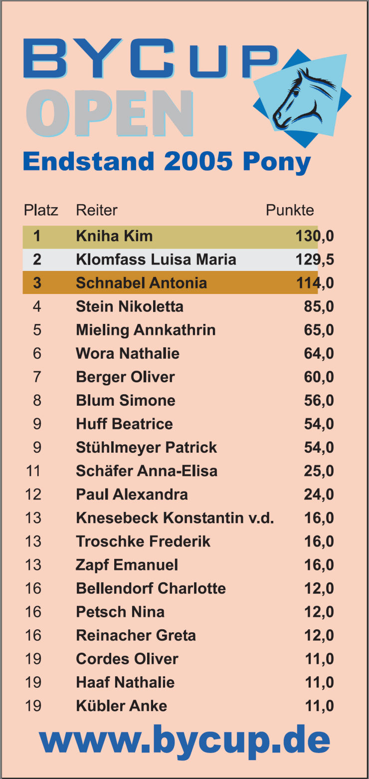 Rot geschrieben sind die Gewinner einer BYCUP-Pony-Prüfung